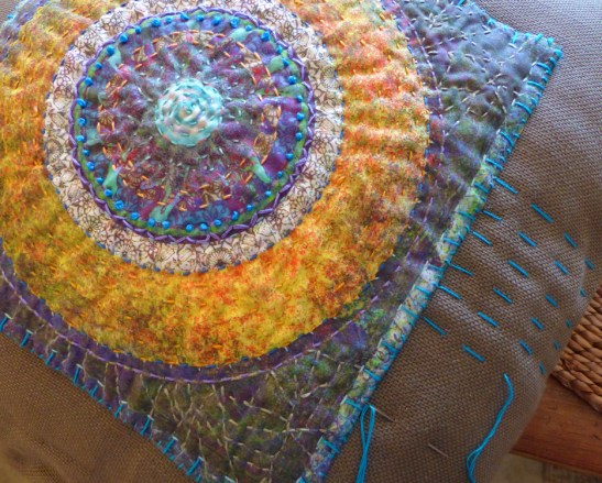 • the finished mandala attached to the pillow center…