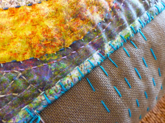 The mandala puckered with the stitching on to a thin layer of cotton batting. The “feel” of it becomes my favorite layer, a digital mandala for touching.